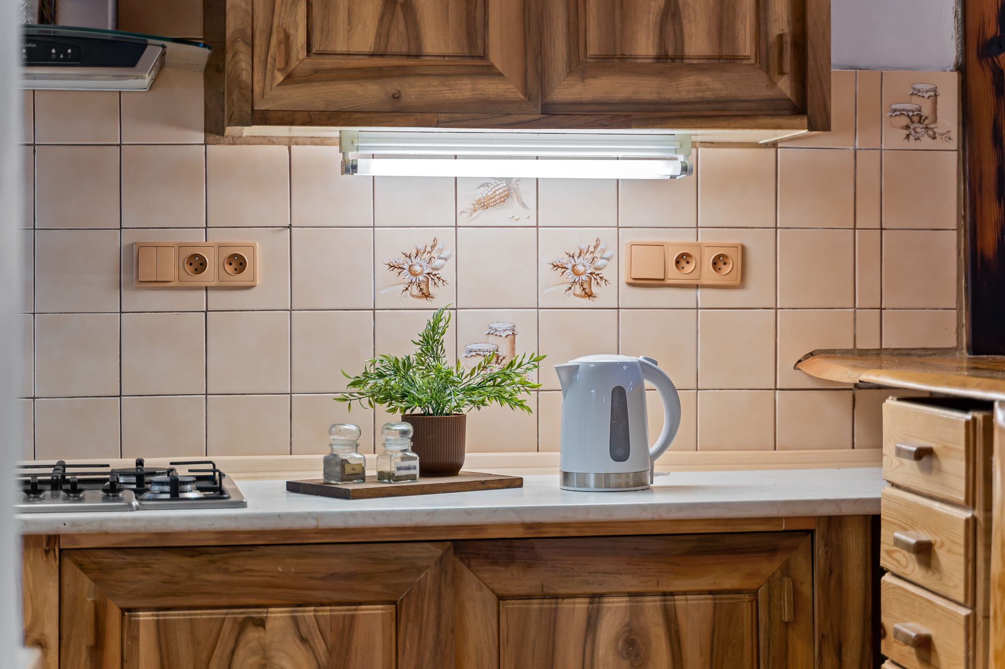– Topení: Elektro kotel + nová krbová kamna
