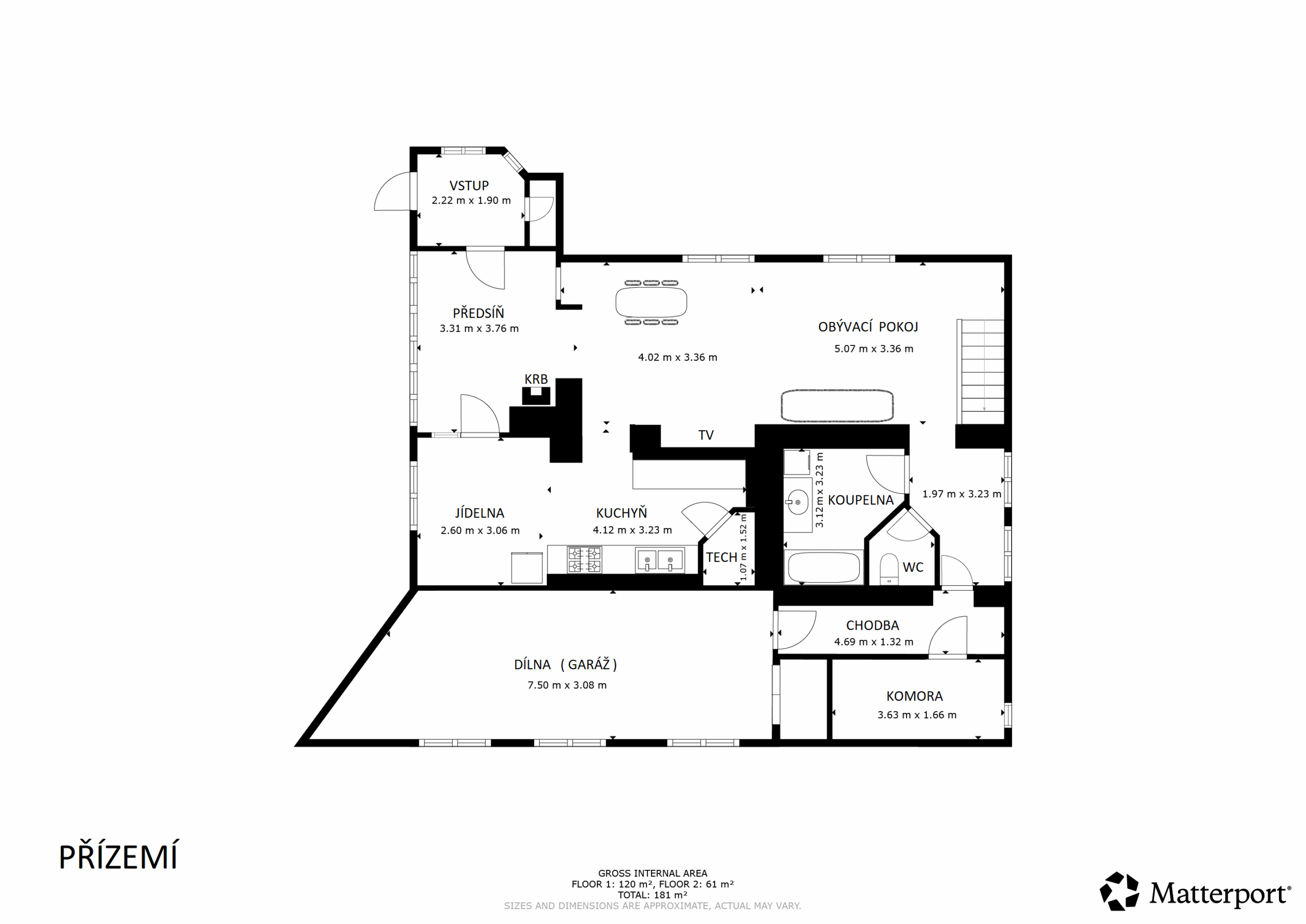 – Špajz, komora a dílna (možnost využití jako garáž pro auto)