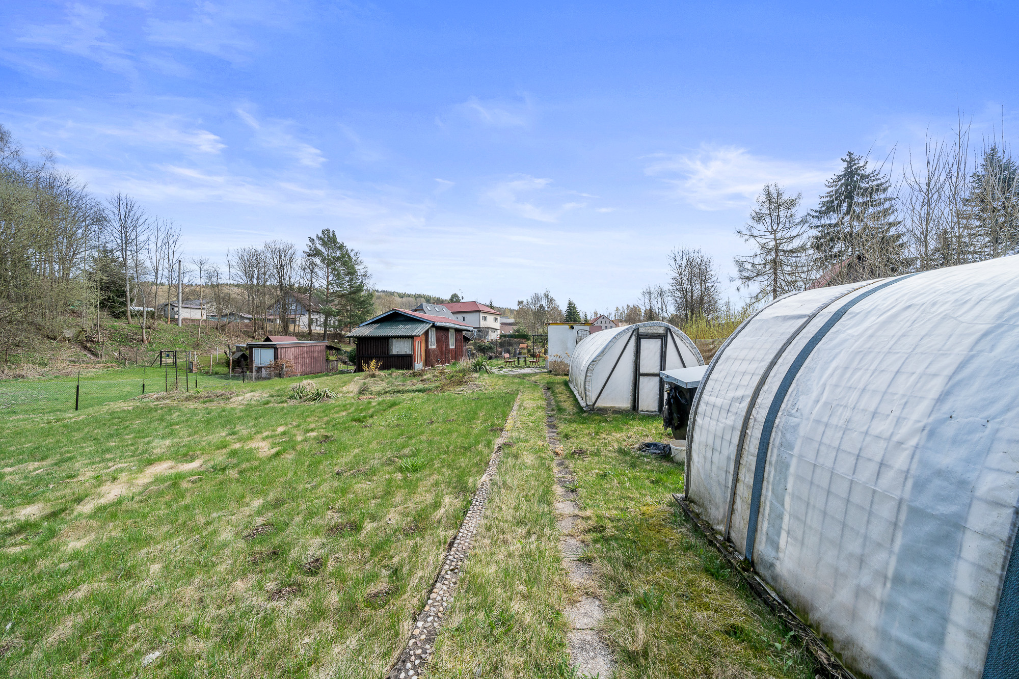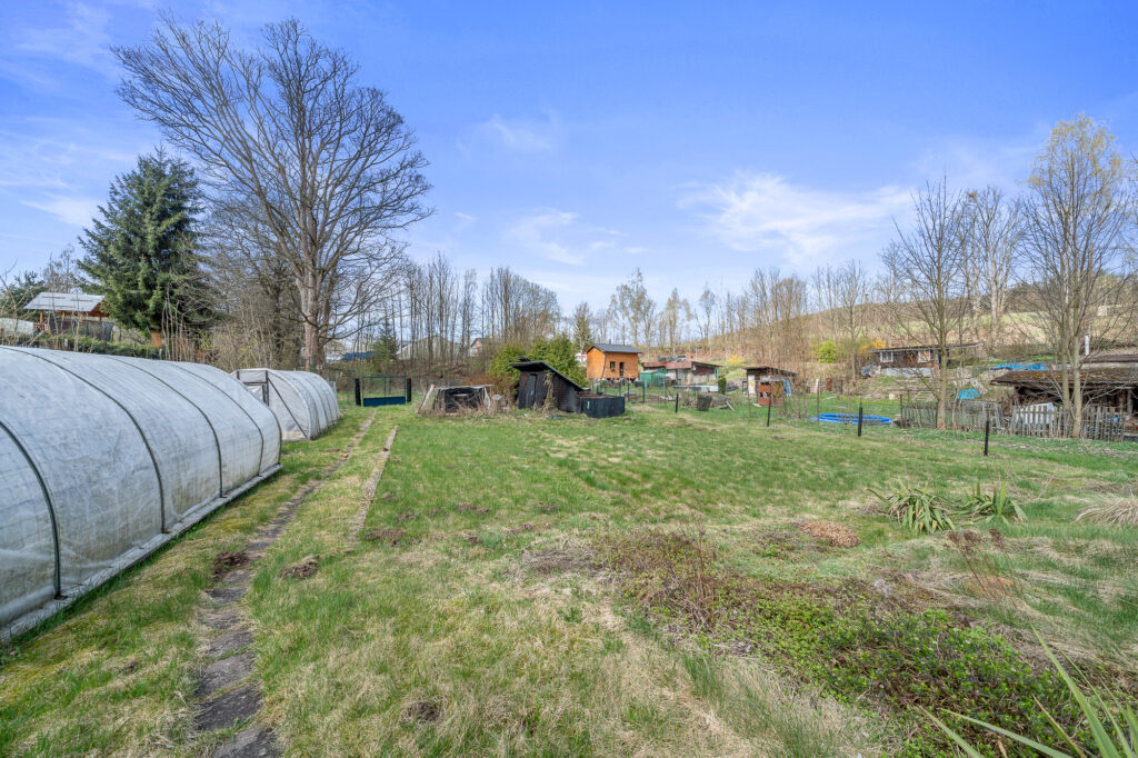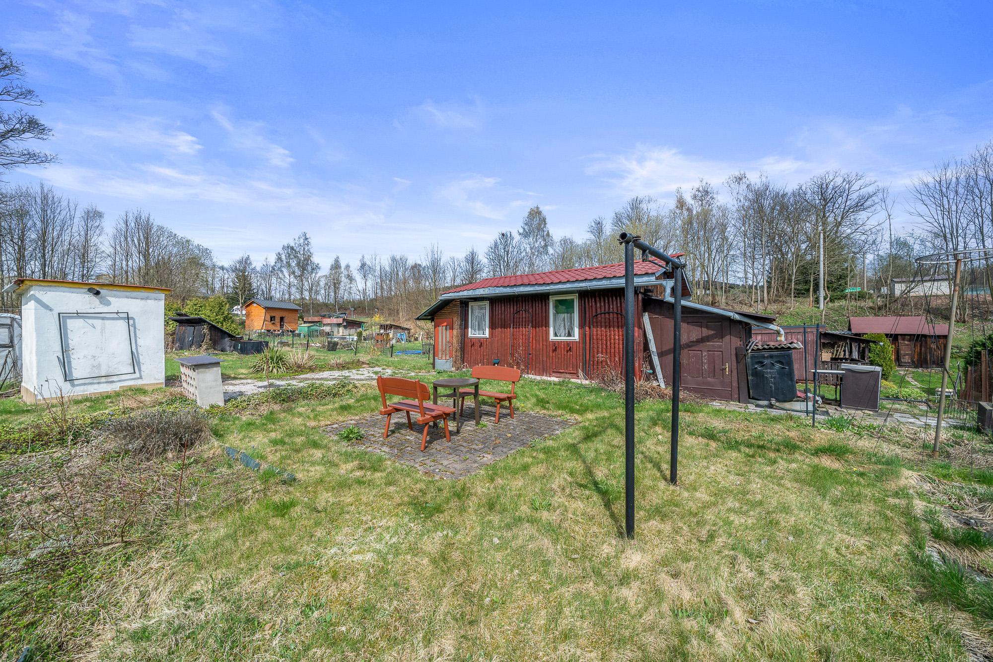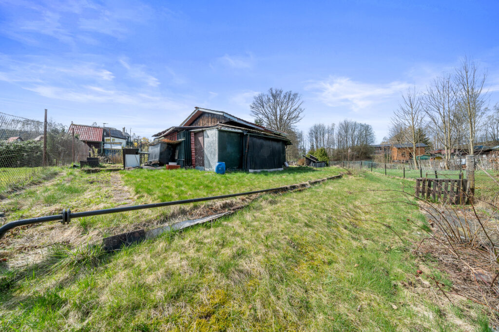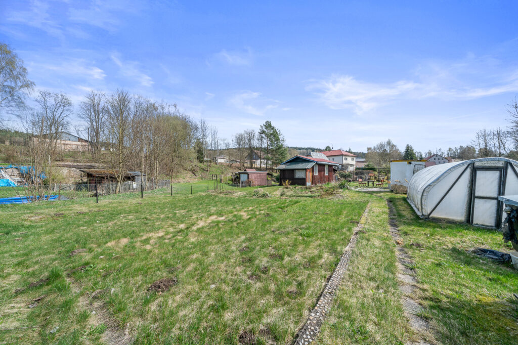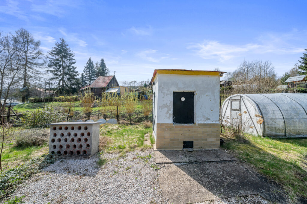 – Součástí pozemku je dřevěný zahradní domek pro pohodlné zázemí i přespání.
