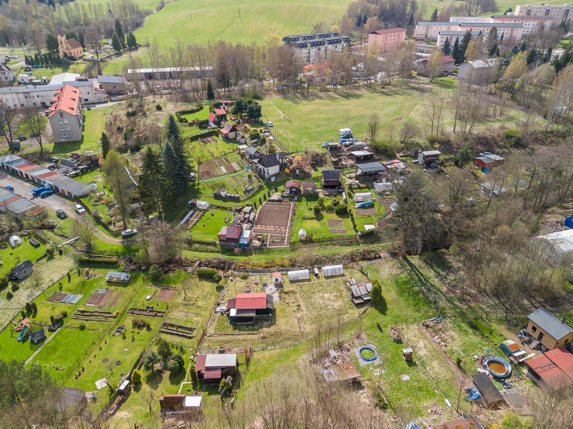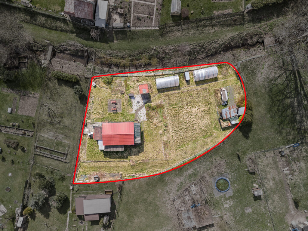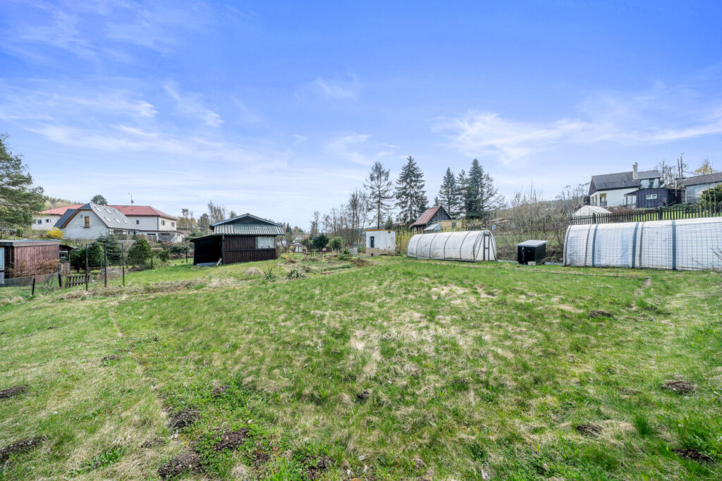 Předmětem prodeje je rovinatá oplocená zahrada o celkové výměře 824 m2, plus podíl 1/4 na sousední parcele, kde je možné např. parkovat auto.