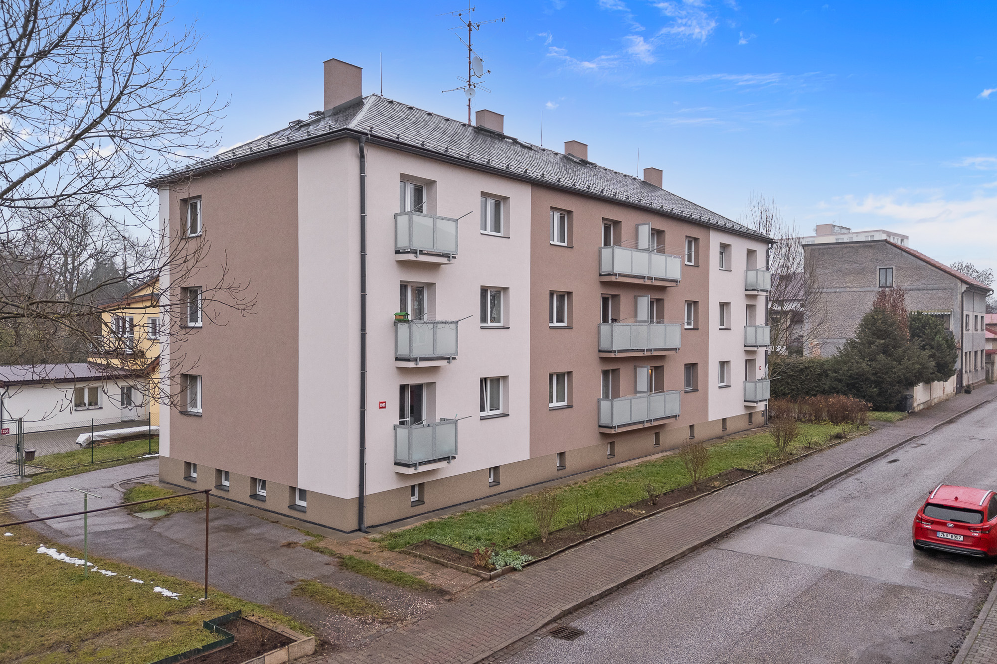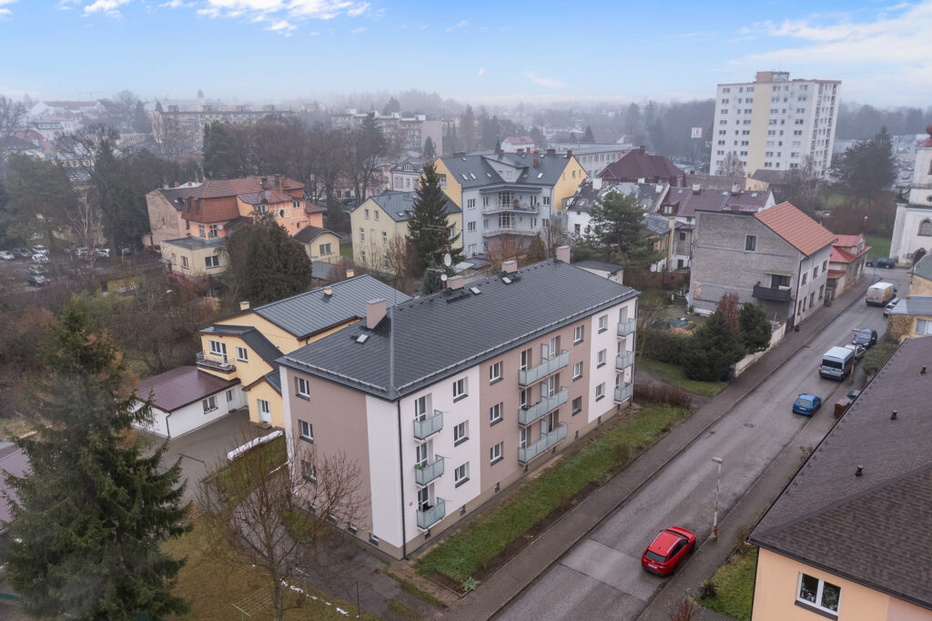 Dům prošel kompletní revitalizací – má nová plastová okna, zateplenou fasádu, nové balkóny i novou střechu. Byt se nachází ve 2. patře bez výtahu a patří k němu balkón a 2 sklepní kóje.