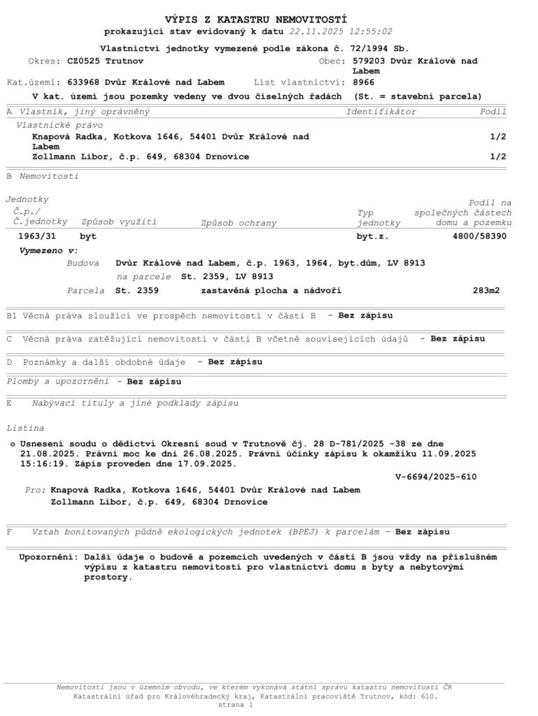 Hledáte byt v oblíbené části Dvora Králové? Tento zděný byt 2+1 o ploše 48 m2 v ulici Kollárova vás zaujme nejen svou polohou, ale i perfektním technickým stavem domu.