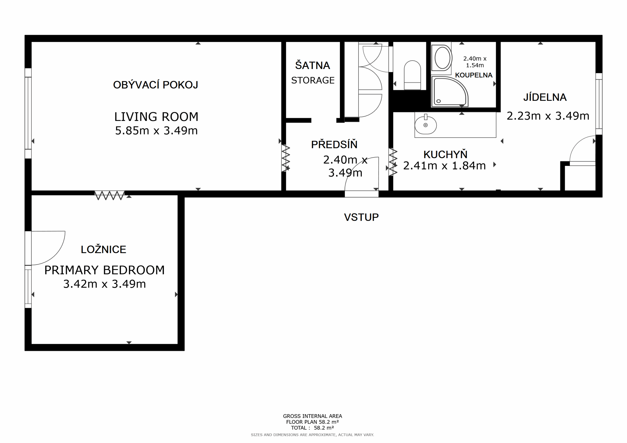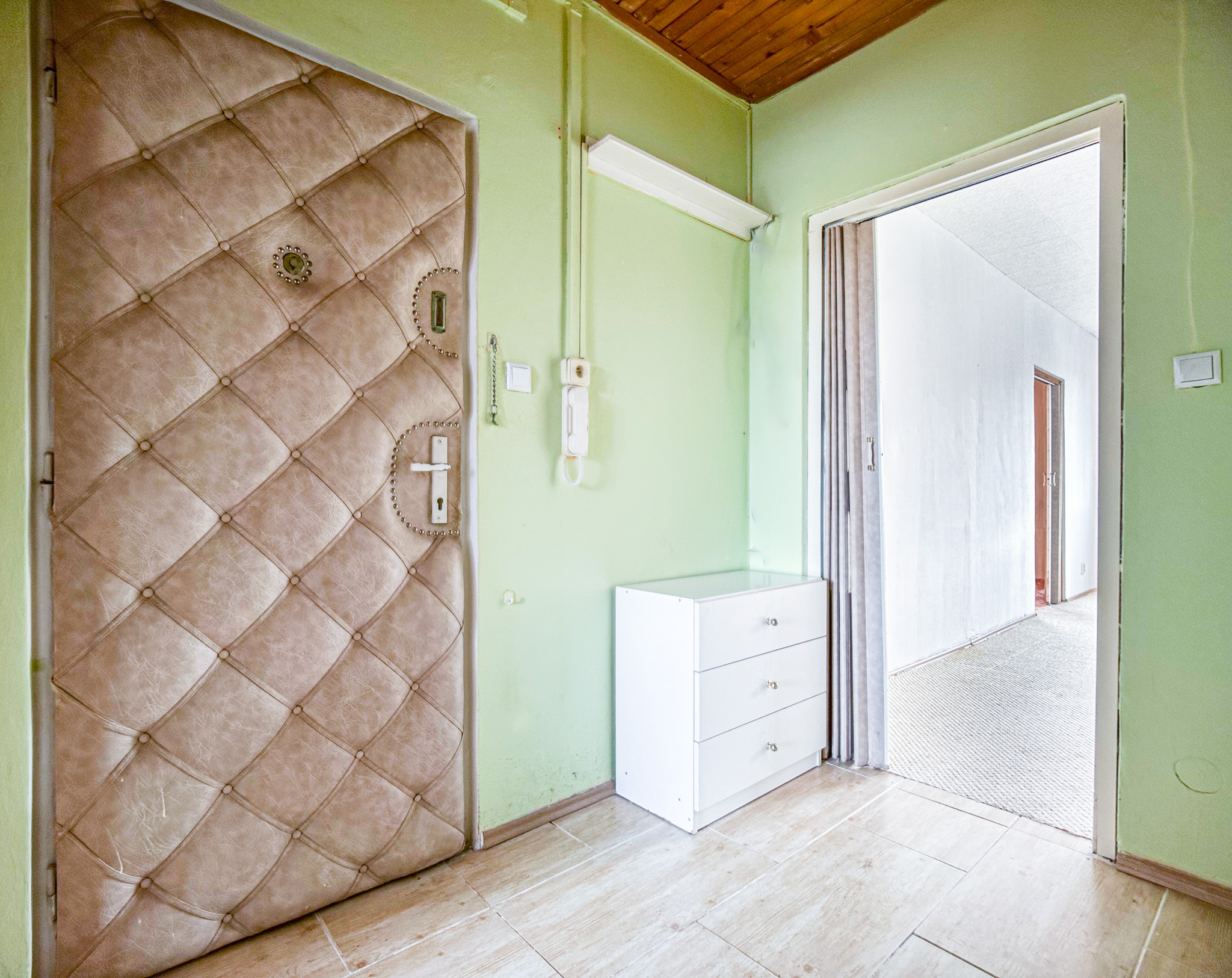 V předsíni se nachází praktická šatna a vestavěná skříň, které poskytují dostatek úložného prostoru.
