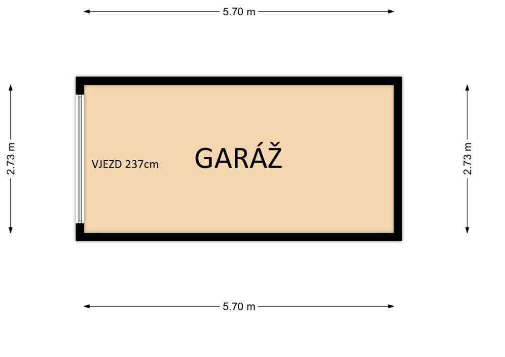 – Plocha: 15.5 m2 = vnitřní rozměry: délka 570cm, šířka 273cm.