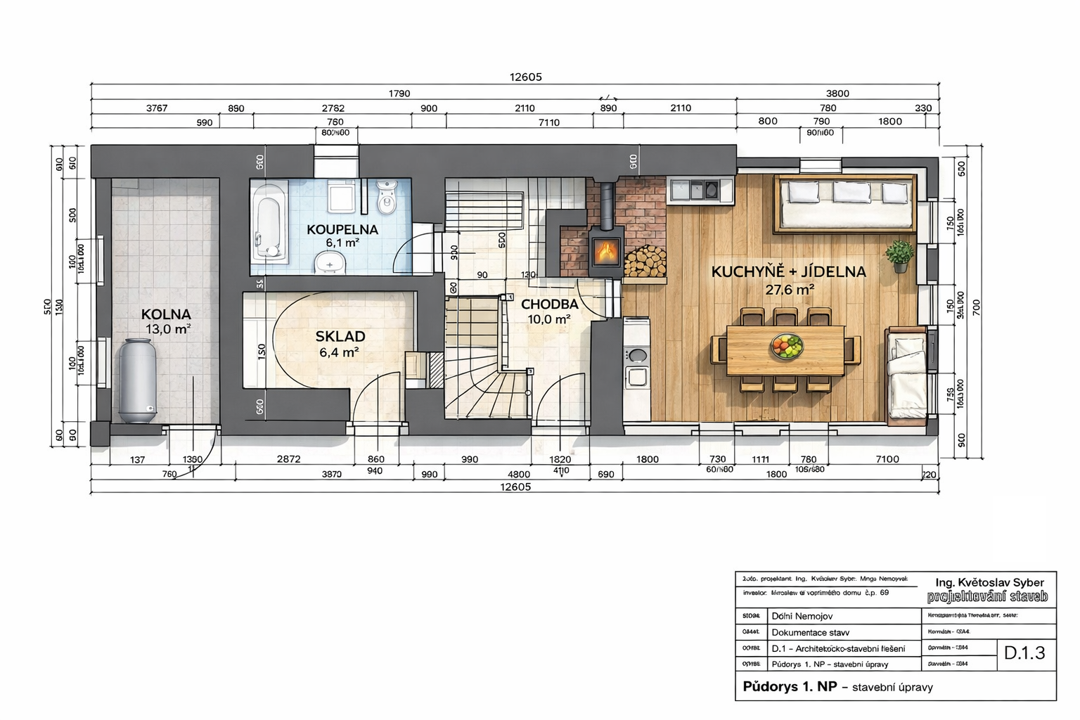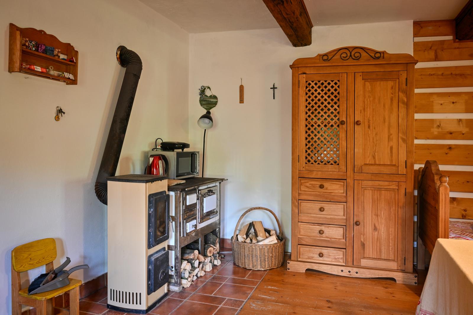 Na obytnou část navazuje sklad a dřevník.