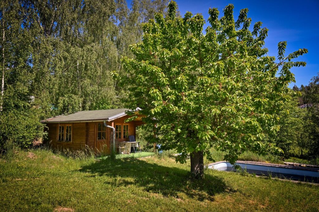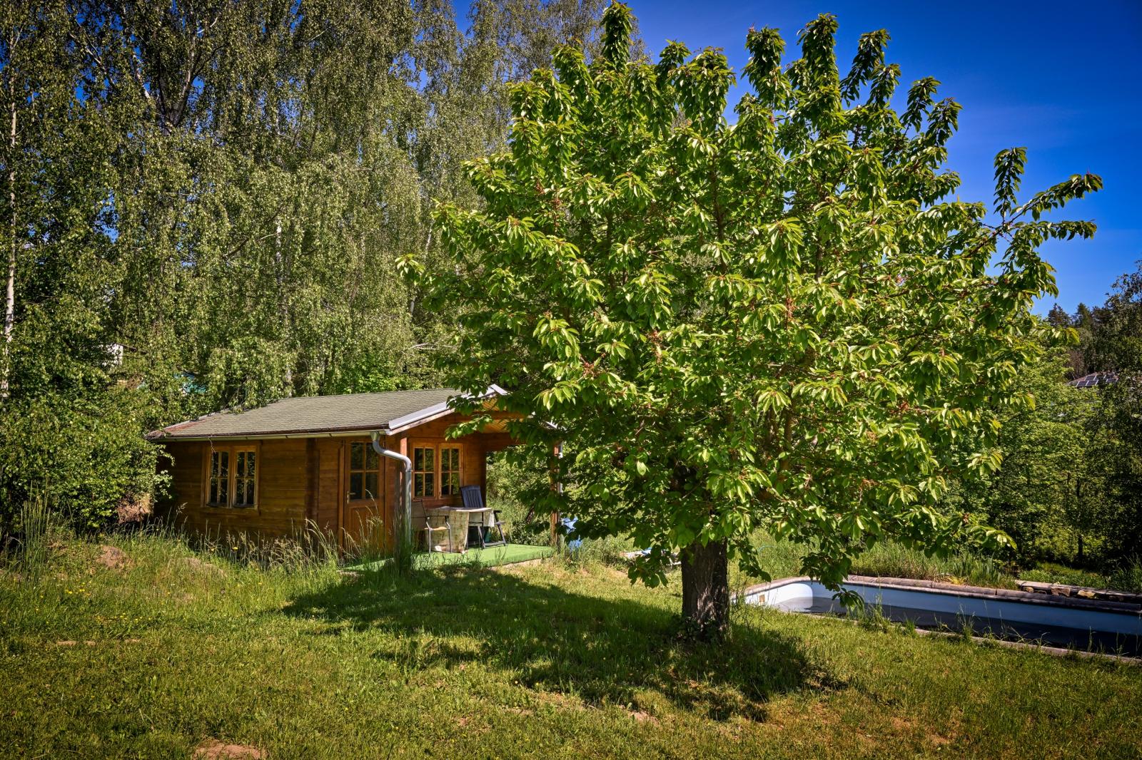 Součástí prodeje je rozlehlý pozemek o celkové výměře 3 738 m². Na pozemku najdete vzrostlé stromy, zahradní domek, bazén a potůček – ideální prostředí pro klidnou relaxaci, letní večery s rodinou, ale i zahradničení. Díky velikosti a členění nabízí místo i pro případné další využití.